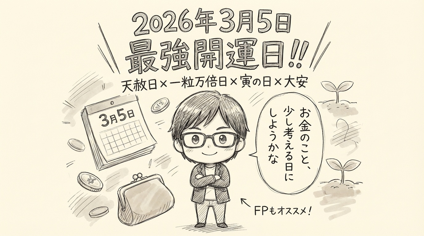 【2026年最強開運日】3月5日は天赦日×一粒万倍日×寅の日×大安|FPオススメ「お金について少し考える日」